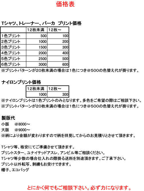 Tシャツに限らず色々な物をプリントしています。